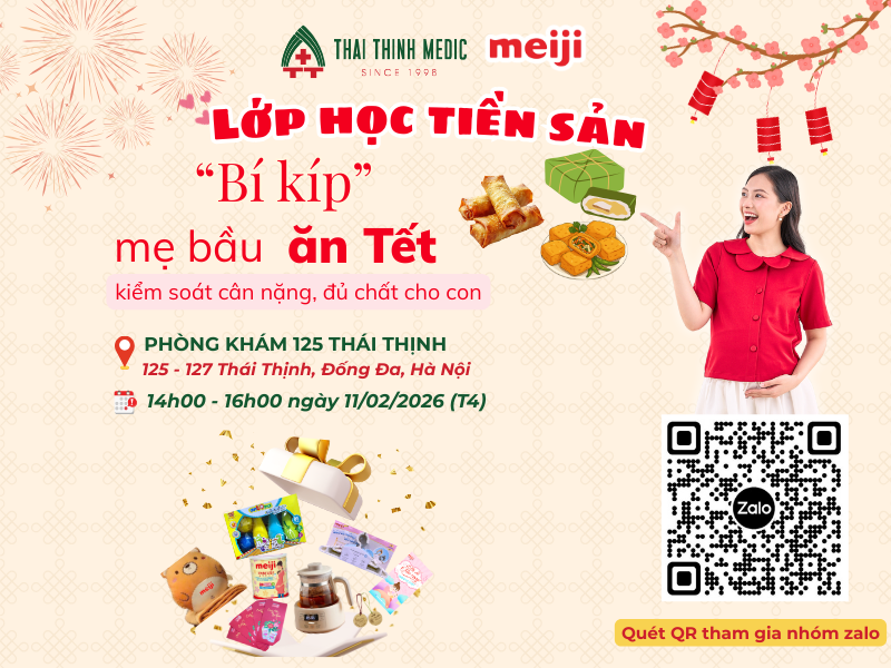 Chương trình sẽ diễn ra từ 14h00 – 16h00, ngày 11/02/2026 (Thứ Tư) tại Phòng khám 125 Thái Thịnh (125 – 127 Thái Thịnh, Đống Đa, Hà Nội). Đây là hoạt động tiếp nối chuỗi lớp học tiền sản được Thai Thinh Medic và Meiji tổ chức định kỳ, hướng tới mục tiêu xây dựng cộng đồng mẹ bầu hiểu đúng – chăm sóc đúng – nuôi con khoa học ngay từ thai kỳ.