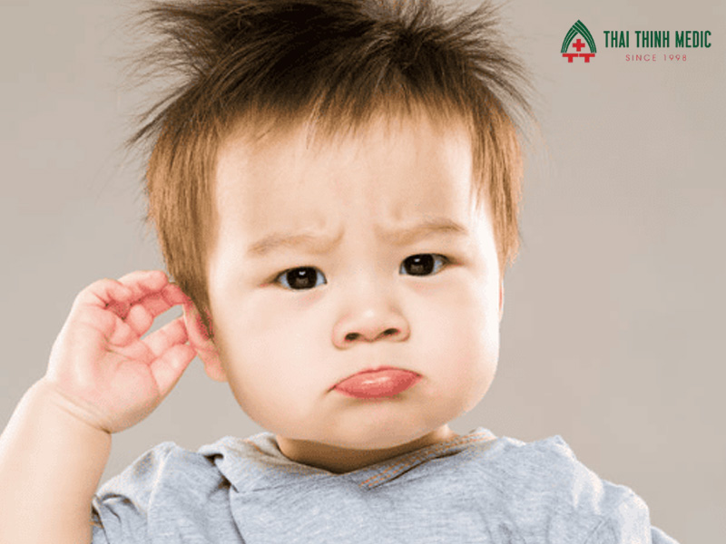 - Dấu hiệu liên quan đến tai: Trẻ hay kéo tai, quấy khóc, than đau tai, nghe kém hoặc phản ứng chậm với âm thanh