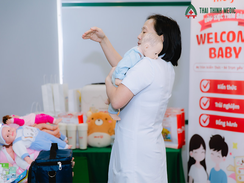 Phần chia sẻ chuyên môn được dẫn dắt bởi BSCKI. Phạm Thị Thu Hà – chuyên gia Nhi khoa tại Thai Thinh Medic đã để lại nhiều ấn tượng sâu sắc. Với lối trình bày dễ hiểu, gần gũi, bác sĩ đã giúp các bố mẹ nắm bắt những kiến thức cơ bản nhưng vô cùng quan trọng trong chăm sóc trẻ sơ sinh. Từ cách theo dõi các dấu hiệu sinh lý bình thường ở trẻ, nhận biết sớm những biểu hiện bất thường, đến cách xử trí ban đầu trong các tình huống thường gặp, tất cả đều được bác sĩ giải thích rõ ràng, khoa học và dễ áp dụng trong thực tế.