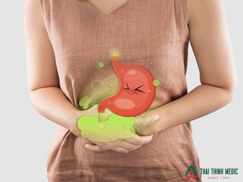 - Đầy hơi, chướng bụng: Người bệnh thường cảm thấy bụng căng tức, khó chịu, nhất là sau khi ăn. Nguyên nhân do thức ăn tiêu hóa chậm hoặc tăng sinh khí trong đường ruột, khiến hệ tiêu hóa hoạt động kém hiệu quả.