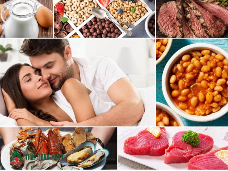 Trứng, hải sản, đặc biệt hàu, thịt đỏ, các loại hạt, rau họ cải, dầu oliu, trái cây giàu vitamin C và thực phẩm giàu kẽm, magie đều hữu ích.
