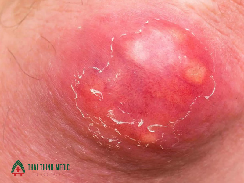 - Da quanh ổ áp xe căng bóng, đỏ rực.