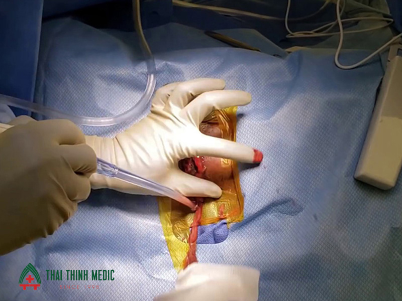 - Gây tê tại chỗ: vùng nách được tiêm thuốc tê để giảm đau, đảm bảo người bệnh thoải mái trong quá trình thủ thuật.