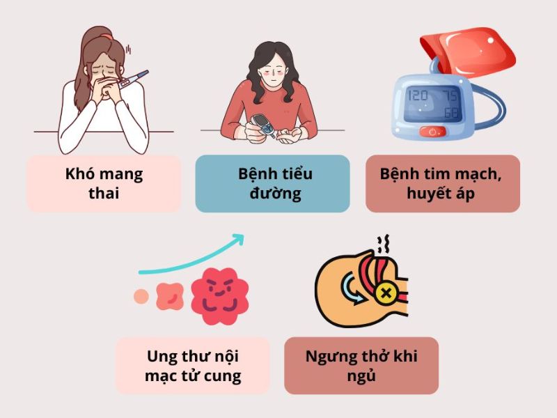 Khi mắc PCOS, bạn có nguy cơ cao gặp phải nhiều vấn đề sức khỏe khác, bao gồm: