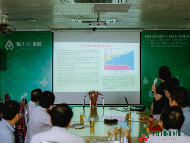 Đồng thời hướng dẫn lộ trình xử trí các tổn thương tiền ung thư theo khuyến cáo mới. Ngoài ra, vai trò của vắc xin HPV, lối sống an toàn và khám định kỳ cũng được nhấn mạnh như những biện pháp thiết thực giúp giảm nguy cơ mắc bệnh. Buổi sinh hoạt không chỉ cung cấp kiến thức y khoa cập nhật mà còn tạo cơ hội để các bác sĩ trao đổi, thống nhất cách tiếp cận, từ đó nâng cao hiệu quả khám chữa bệnh và đảm bảo dịch vụ an toàn, chất lượng tại Thai Thinh Medic.