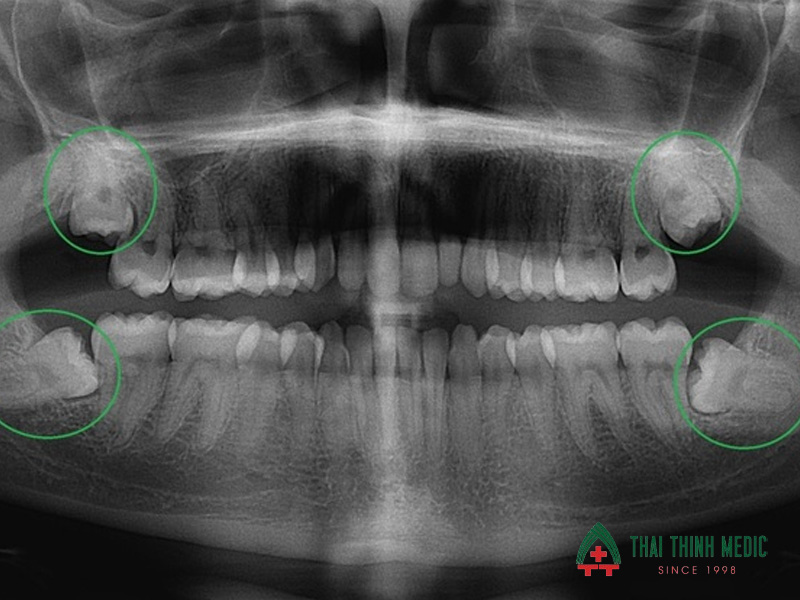 - Hình thành u nang xương hàm quanh thân răng khôn mọc ngầm, có thể gây tiêu xương hoặc biến dạng hàm nếu không can thiệp.