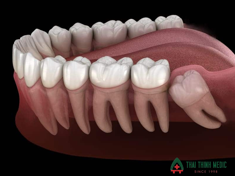 - Răng mọc lệch hoặc mọc ngầm gây chèn ép răng số 7, làm răng bên cạnh bị đau, lung lay hoặc sâu.