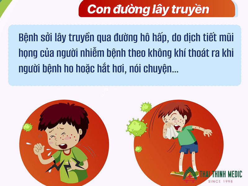 Sởi là bệnh truyền nhiễm cấp tính, lây rất mạnh qua đường hô hấp khi trẻ hít phải giọt bắn chứa virus. Nguy cơ lây truyền cao nhất trong giai đoạn 4 ngày trước và sau khi nổi ban. Trẻ chưa tiêm vaccine là đối tượng dễ mắc nhất.