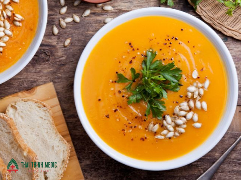 - Chế độ ăn uống phù hợp, ăn nhẹ, đồ dễ tiêu như cháo, súp, sau đó tăng dần thêm thức ăn mềm.
