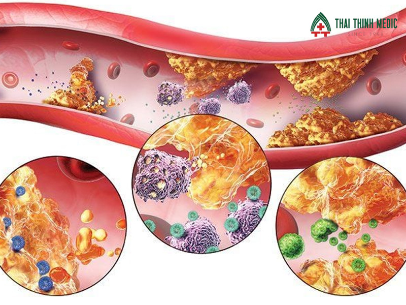 - Xơ vữa động mạch do mảng bám lipid lắng đọng trong lòng mạch, làm hẹp và tắc mạch máu.