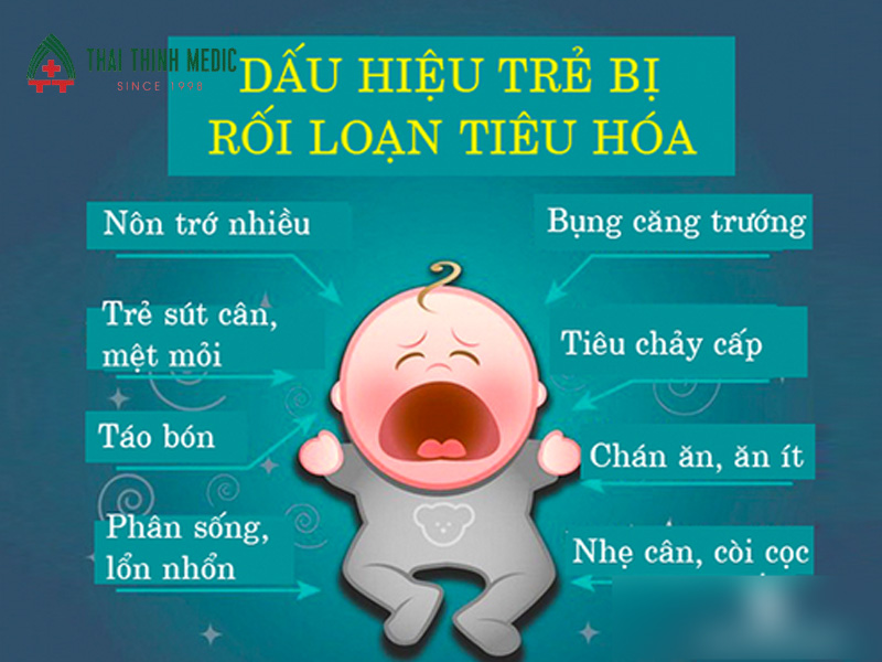 Khi bị rối loạn tiêu hóa, trẻ có thể xuất hiện các triệu chứng như tiêu chảy, táo bón, đầy bụng, chướng hơi, nôn trớ, phân sống hoặc biếng ăn. Đa số các trường hợp rối loạn tiêu hóa ở trẻ là tình trạng chức năng, không phải bệnh lý nguy hiểm và có thể cải thiện nếu chăm sóc đúng cách. Tuy nhiên, nếu các dấu hiệu của tiêu chảy ở trẻ em kéo dài hoặc tái phát nhiều lần có thể gây ảnh hưởng đến khả năng hấp thụ dinh dưỡng, làm trẻ chậm tăng cân, suy dinh dưỡng hoặc mắc phải các bệnh đường ruột khác.