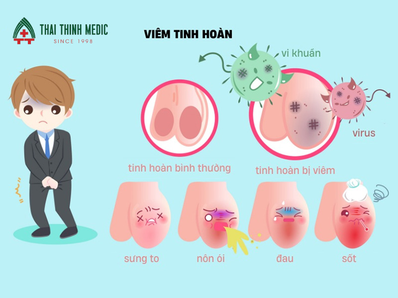 Viêm tinh hoàn là tình trạng tinh hoàn bị viêm do vi khuẩn hoặc virus gây ra. Bệnh có thể xuất hiện sau các nhiễm trùng đường tiết niệu, bệnh lây truyền qua đường tình dục hoặc biến chứng của bệnh quai bị. Nếu không điều trị sớm, viêm tinh hoàn có thể gây đau kéo dài và ảnh hưởng đến chức năng sinh sản.