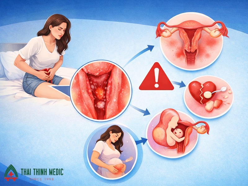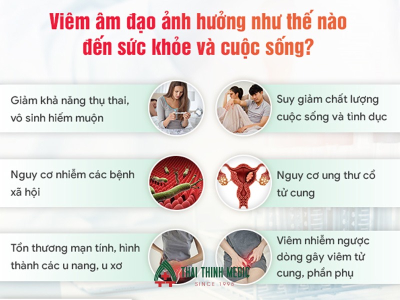 Nếu không điều trị triệt để, viêm âm đạo có thể lan sang các cơ quan lân cận như cổ tử cung, tử cung, gây ra nhiều bệnh phụ khoa khác. Đồng thời, bệnh cũng có xu hướng tái phát nhiều lần, gây ảnh hưởng lâu dài.